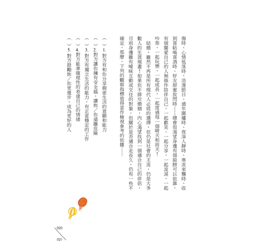 相較於鼓吹去愛,或者要人愛自己的文章,這本書更實用也更按步就班。讓我一邊看著一邊想著:如果這本書早點問世,我就不會走錯那麼多路。──大A