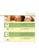 詳細介紹家中各房、廳適合的布局與裝修原則,例如:客廳設置在東北方,有助於提升競爭力、廚房設置在東方時,可採用綠色圍牆面顏色,加強此區域的能量,維護家人健康等;輔以居家裝飾品材料、形狀、色調的選用知識,不僅讓你擁有好風水,也能擁有美麗家居,例如:不規則形狀為水元素的代表,放置在東南方可以增加財運、放置鏡子在陰暗的角落,可以促進氣的流動,也可以增加室內亮度等。
