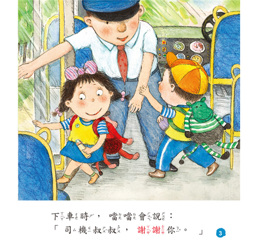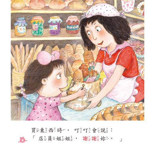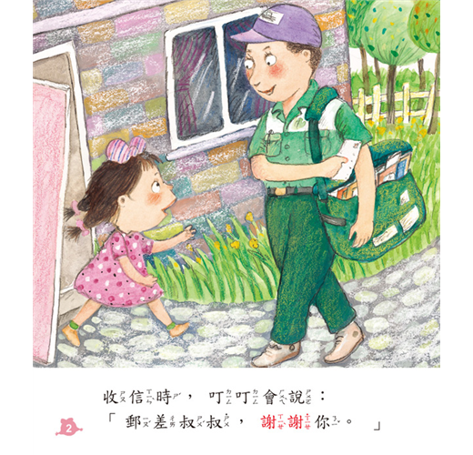 《謝謝!》當我們買完東西後,你會對店員說什麼呢?郵差叔叔辛苦幫我們送信來,你會對他說什麼?快想想看,你是否和叮叮噹噹一樣有禮貌喔!