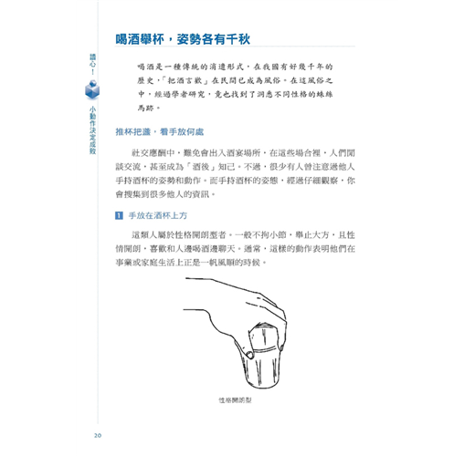拿酒杯的方式、打電話時的小動作,顯示出一個人的個性
