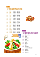 如在介紹山藥這益脾胃食物時,除了介紹食材、標示功效之外,也說明了營養成分和對脾胃的好處,更有「健脾胃私房菜」食譜,供做菜時參考。另一特色是在選擇搭配山藥時,書中會提示「這樣搭配最健康」和「這樣搭配易生病」,讓讀者在菜色配置上提供很實用的指南。