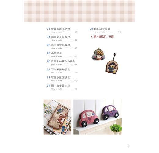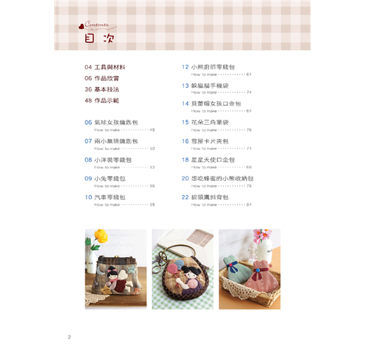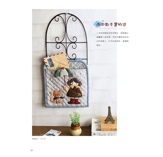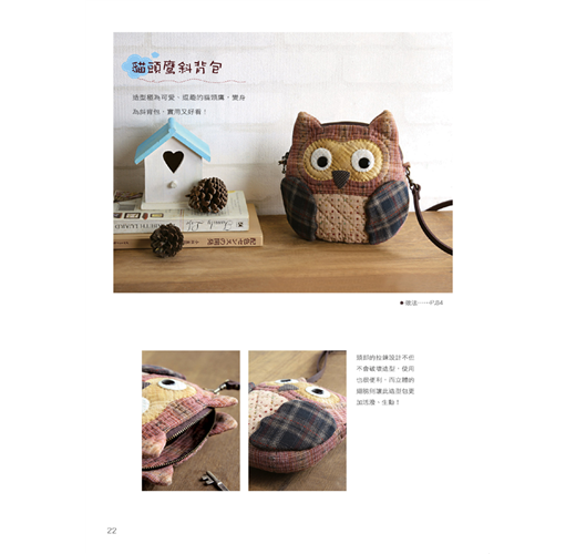 《愛上拼布生活手作》就是一本以拼布為主題的手工藝書籍,書中提供了零錢包、手機袋、口金包、三角筆袋、卡片夾包等手作小物,以及口金包、收納包、斜背包、束口提包等實用包款,另外還有隔熱手套、面紙套、置物袋、掛飾等生活家飾。在這些作品中則穿插著小男孩、小女孩、小魔女、小熊、小兔子、貓頭鷹和星星天使等角色,甚至還有小蛋糕、蜂蜜罐、花朵、甜甜圈等可愛小物,作者江晏湄利用詳細的說明文字搭配清楚的圖片步驟帶領你一同進入拼布世界。現在就跟著我們開始動手製作,感受拼布輕手作的溫暖魔力吧!