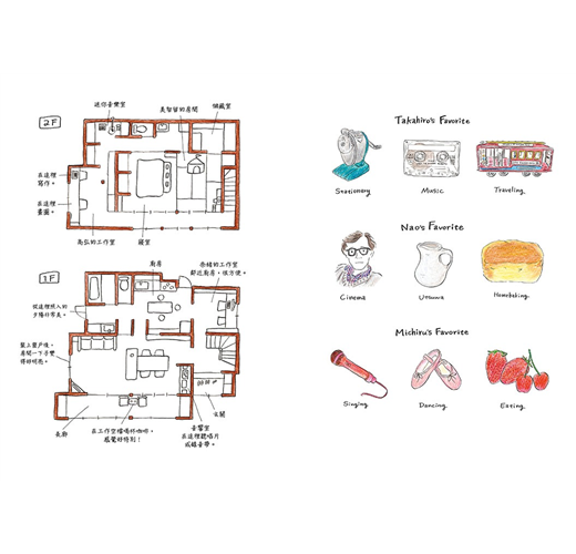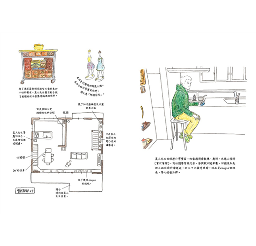 每一篇的最後放有作者的先生小池高弘所繪製的裝潢、人物、平面圖等插圖,增添閱讀的趣味性。