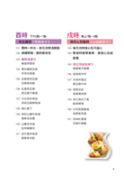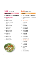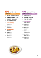 紫蘇梅子飯糰‧塔香烤洋芋‧木耳拌黃豆‧黃豆燉牛肉‧香蕉豆奶‧香蕉糯米粥‧杏仁烤沙丁魚‧鮭魚鮮粥‧川芎黑棗雞湯‧馬蹄紫菜湯‧茯神紅棗粥‧天麻什錦飯