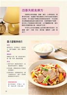 蓮子甜椒炒肉片‧芝麻蓮香飲‧南瓜子濃湯‧山藥杞子燉腩排‧酸棗仁煎餅‧山藥鵝肉湯‧麥冬蒸石斑‧茯神桂圓羹‧紅白蘿蔔煲元蹄‧浮小麥洋參茶‧薰衣茉莉茶‧決明腦清茶‧參茯棗仁安神茶‧天麻熄風熱飲