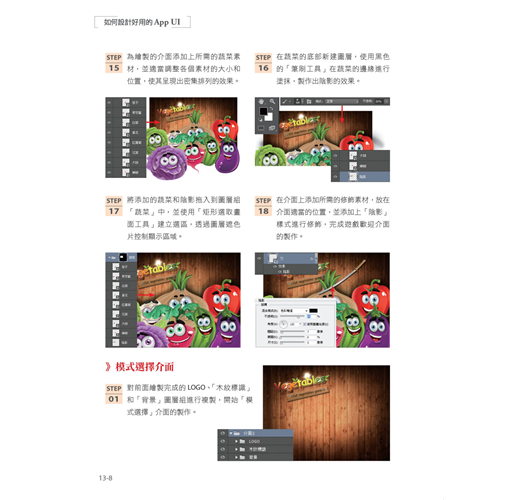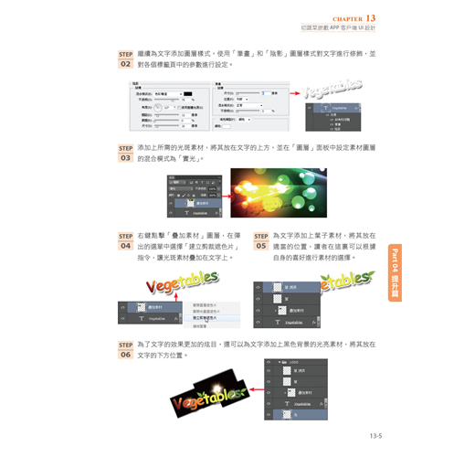 書中包含了大量的案例,每個案例都根據不同的創作風格進行說明,並將平面設計知識和軟體運用知識貫穿其中。