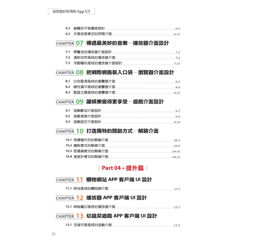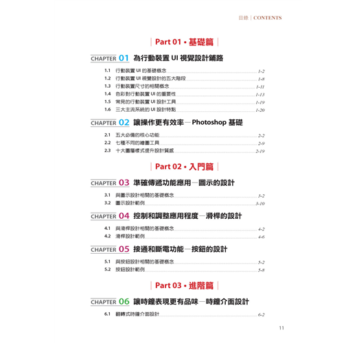 本書透過對行動裝置三大主流作業系統的UI視覺設計的風格進行分析,並講解APP使用者介面的設計思路和製作過程。其中Part01講解了與行動裝置相關的基礎概念,以及Photoshop的繪圖功能和修飾技巧;Part02講解了基礎的介面元素的設計和創作要點;Part03講述了各種不同類型介面的設計要領和技巧;Part04則以專案要求的形式提出設計的內容,根據要求來對介面進行佈局、配色和風格設定,提供讀者一個完整的APP介面的視覺設計流程。