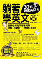 《躺著學英文:30天聽出英語力》專為台灣讀者規劃一套「30天英語自救術」。1天1個課程,每個課程都可以同時學到「必備單字」、「文法」和「口說句型」。因此只要按照本書進度「用聽的」、「用看的」照表操課,30天後英語能力必定大幅提升。