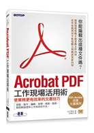 PDF的製作與編輯都需要藉助Adobe Acrobat完成。Adobe Acrobat除了具備PDF的製作以及頁面文字、圖片的編輯功能之外,還內建了表格與註解與電子簽名的驗證功能,但也因為功能過於豐富,導致許多功能被忽略了,想必不少人都只是將PDF當成印刷完稿用的軟體而已吧!因此,本書除了鉅細靡遺地介紹Acrobat的功能之外,還介紹組合多種功能才得以實現的技巧以及能在職場應用的PDF絕招。本書的重點在於實務的應用,至於理論上的說明則力求精簡。