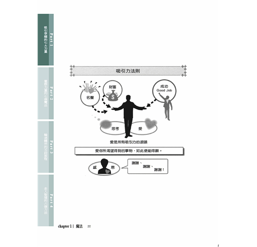 ※以圖解方式向讀者介紹「吸引力法則」之精要,透視「肉眼不可見的力量」之根源。