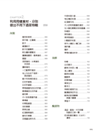 CHAPTER1.介紹各式酒類與下酒菜的搭配,如果是想大口喝啤酒,就一定不能少了日式炸雞與毛豆,爽快一口乾下是最暢快的事情了!除了啤酒外,還介紹洋酒、日本酒、燒酒等不同酒種適合的下酒菜,另外也針對不同場合,包含家族聚會上該準備哪些料理、專門給內行的老饕享用的料理等。