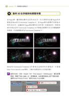 ◎在標題字幕的製作上,除了有在情書上的逐字顯現或是類似星際大戰般的字幕流動等效果,也介紹了利用Boris Continuum Complete的外掛程式來製作3D字幕,讓標題字幕的表現更加多樣化。