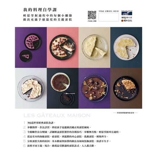 本書收錄近七十道經典蛋糕食譜,從最基本的海綿蛋糕、磅蛋糕,到進階版的夾心蛋糕、巧克力蛋糕與乳酪蛋糕,搭配簡單易懂的步驟分解圖,讓新手在家也能做出純正經典的蛋糕風味。快拿出你的烘焙工具跟著本書做蛋糕,與家人或三兩好友一同享用與眾不同的甜蜜滋味吧!