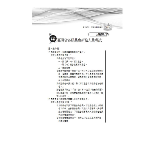 ‧歷屆試題(第十五次台灣省各級農會~103年第一次全國各級農會)演練並逐題解析,有效掌握考題趨勢。