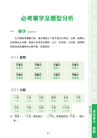 按照考試內容,本書分為四大單元,每一單元一開始分別是「單字整理」、「文法分析」、「閱讀解析」、「題型整理」,接著每一單元都有實力測驗與解答解析,除了一網打盡所有必考重點之外,還能藉由測驗與解析找出應考盲點,厚植實力。
