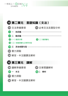 第二單元:「言語知識(文法)」依照出題基準,系統整理基礎文法,幫助考生熟記基礎文法概念,加速考生作答效率。