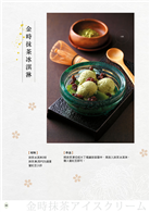 在雪白的刨冰上,澆淋入濃綠特製的抹茶糖漿;將原味的牛奶冰淇淋,調色成大人感的抹茶風味;在味道單純的白吐司上,塗上各式各樣的抹茶麵包抹醬。晨昏與四季,都能幸福品嘗的翠綠優雅之味。
