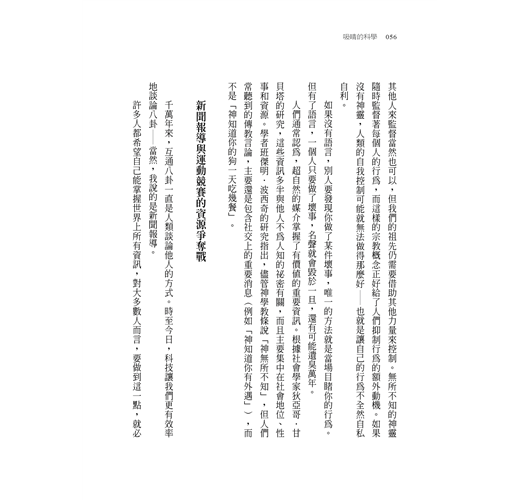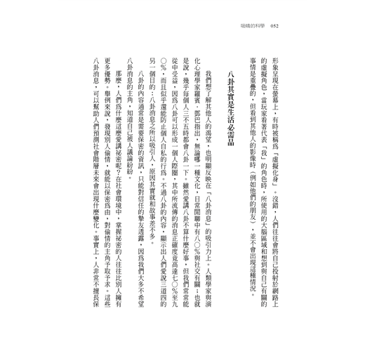 本書綜合各項研究成果,為讀者提供詳盡並具說服力的知識脈絡,幫助我們了解這些引人入勝的事物,如何令人深深著迷,甚至能操弄人類的心智。