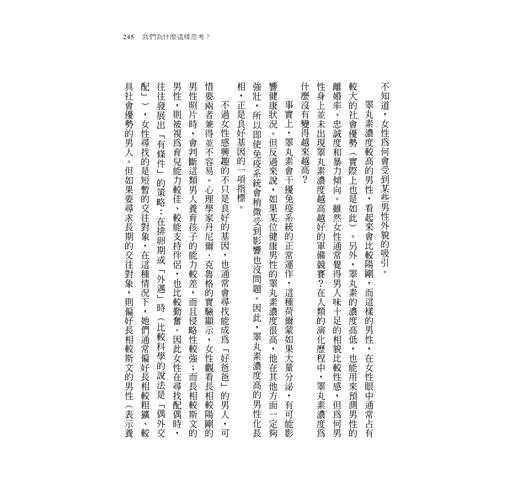 本書深入研究人類生活的特性,其源頭追溯自人類物種的本質:為什麼我們會預做計畫、發揮想像力、創造虛構世界、在合唱中又哭又笑、喜歡謎題與不協調的事物、偏好韻律與重複、集結成群而排擠外人、尋找外貌出眾的伴侶,並渴望社會地位。如果你想更了解人性,這本書是絕佳指南。