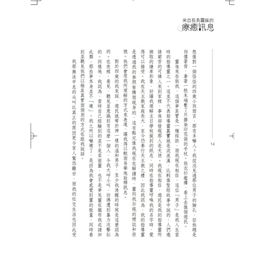 特蕾莎透過個人故事、奇妙的趣聞、以及引人入勝的個案解讀,教導我們如何與靈溝通,也幫助我們理解並領會每天本該擁抱的重要功課和動人訊息。
