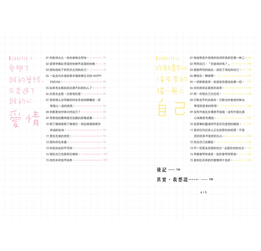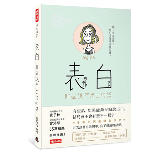 Dorothy溫柔堅定地拆解生活的酸甜苦辣,時而溫暖,時而倔強,書中的畫語療癒了寂寞、不安的靈魂,分享愛和勇氣,並持續鼓動著每顆心,用畫筆說出每個人的「真心話」。