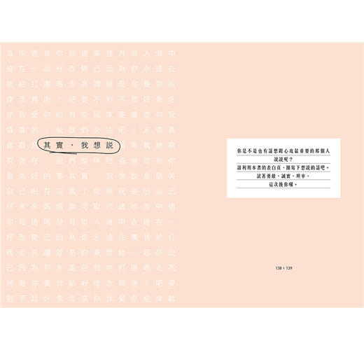 本書特別設計表白萬用頁,你可以發揮創意圈寫,並寫下想說的話,