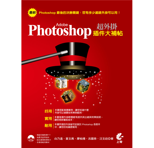 本書是一本純粹以支援Photoshop軟體,並且去除版本化,讓使用Photoshop工作的您能獲得更多支援的外掛資源介紹型輔助工具書。