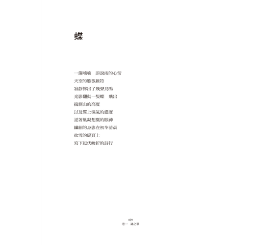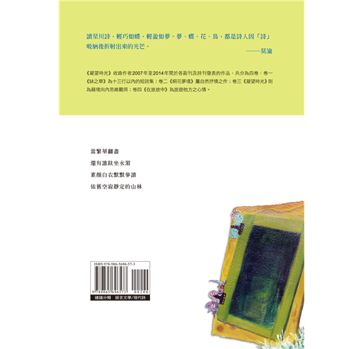 讀琹川詩,輕巧如蝶,輕盈如夢。夢、蝶、花、鳥,都是詩人因「詩」吸納後折射出來的光芒。──莫渝