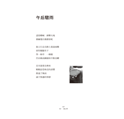 若是此生必定,往更深的山野行去,讓清涼潔淨的山泉,沉澱浮塵;往更深的心野探尋,讓安靜的畫筆細細描繪,光的容顏;隱成一片書寫四季容顏的葉子,一陣怕吵醒山林囈語輕得不能再輕的風,那麼,我即將啟程,行走於此路上。──琹川