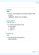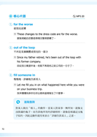 每一個核心片語,作者都精心設計,從情境對話中認識片語,再編寫不同的句子來呈現片語。透過這種「從不同角度的」一層又一層的學習,讓讀者能接觸、確實理解、熟悉、複習、真正「學會」一個片語。