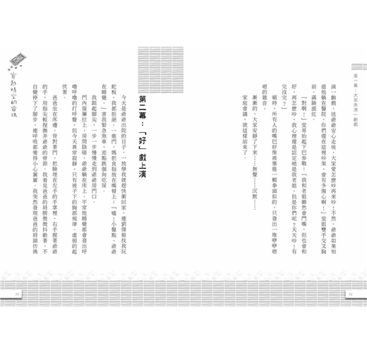 昱文的爺爺罹患肺腺癌,合併輕度老年失智已經一年多。最近,他的病情每況愈下,不但對治療癌症的標靶藥物產生抗藥性,更因「譫妄」導致失智症加重,神智經常穿梭於過去和現在之間,有時連親人都不認得。日前,醫生更直接宣告,爺爺大約只剩半年可活,而他最大的心願,就是看見一家和樂。然而昱文一家吵吵鬧鬧,早已將近半個世紀,這樣的心結該如何化解,他們能讓爺爺了無遺憾嗎?故事感人肺腑,提醒大家及時行孝,更提點出高齡化社會將帶給每個家庭的衝擊,是一本不可不讀的好書。