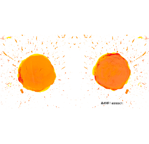 「很快的把書闔上,讓黃色和紅色親一下,會變成……」