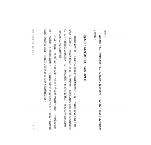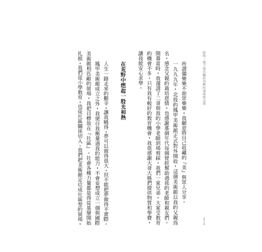 於是他以父親之名創立「鳳甲美術館」,這就像在台灣文化界點亮一盞燈──他的生命因人文藝術而美好,也相信未來如果能有一百間像鳳甲一樣的美術館,台灣一定會更好。