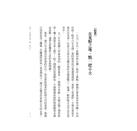 他創建全台第一家微電子公司,堪稱台灣科技列車的開路先鋒,當今科技業界的領導者如施振榮、宋恭源等人,都曾是他的部屬。爾後卻遭遇倒債數千萬的危機,為了堅守信用,他努力還完最後一毛錢;即使一無所有,仍無所畏懼地勇闖東歐電子市場……面對一路走來跌宕起伏的事業,他沒有埋怨,只有從中累積更多對人的理解和尊重,練就對事物抱持正念與獨到的決斷力。