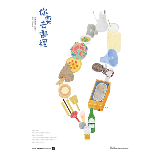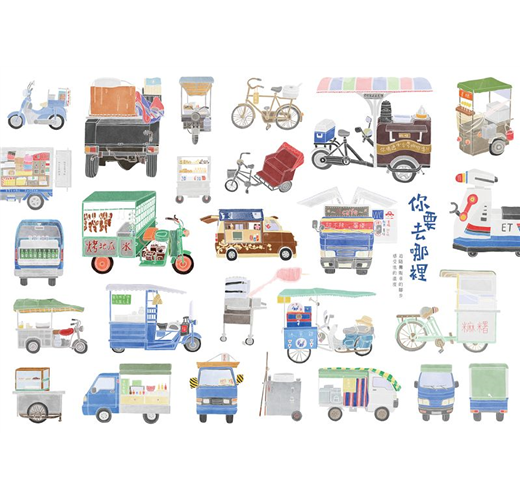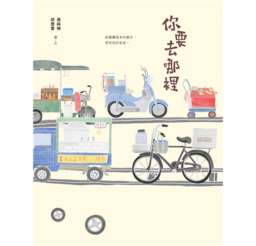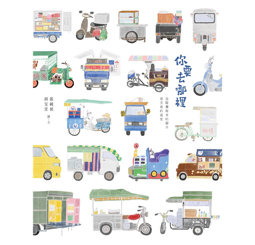 你要去哪裡?是純禎與旻萱二人從台灣頭跑到台灣尾,在街頭巷弄間隨機看到呼嘯而過的攤販車時內心的疑問,亦是自己對於下一段旅程的心情。從決定創作主題後,二人再一次回到熟悉的家中,用完全不同的角度與心情,重新認識與記錄一直以來圍繞在身邊的一切,之後開始利用課業閒暇之餘,到處追隨著攤販車的蹤影,停下腳步與主人們從閒話家常到娓娓而談,記錄下最真實的寫照,描寫了數以百篇的故事。喜歡文字的二人從編輯、撰文、插畫與設計一手包攬,在字裡行間與引人入勝的插畫之間,可以真切地感受到他們用最感恩與誠摯的態度,最後完成了一冊冊來自內心的動人作品。