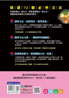文法藏在細節裡!書中的每個單元,都清楚標示文法重點,先把文法元素圖解,再將各種變化表格化,一個文法一個跨頁,所有細節精采呈現,幫助讀者理解,也方便學習和查找。此外,每個文法都有說明使用時機,需要應用在口語、寫作的時候,只要有這一本,就能立刻完成你要的任何句子!