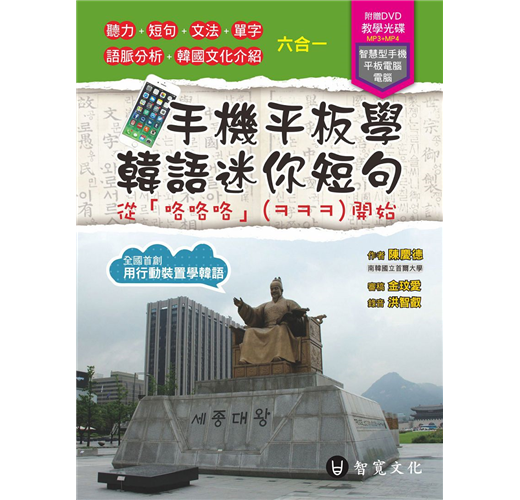 韓語學習著作:《手機平板學韓語40音》、《搞定韓語旅行會話就靠這一本》(智寬);《簡單快樂韓國語1、2》、《韓語40音輕鬆學》、《韓國語入門》、《韓語超短句—從「是」(네)開始》、《韓半語—從「好啊」(콜)開始》(統一);《背包韓語》、《公事包韓語》、《學慣用語說道地韓語》(聯經);《一看就會的韓語拼音》、《一看就會的韓語會話、文法》(五南)等十餘本。