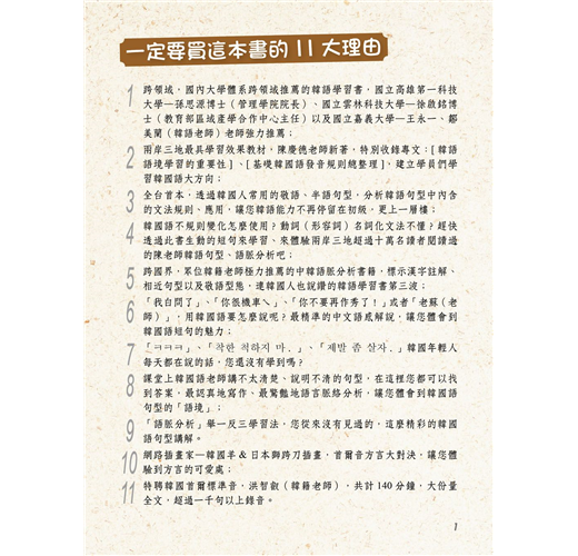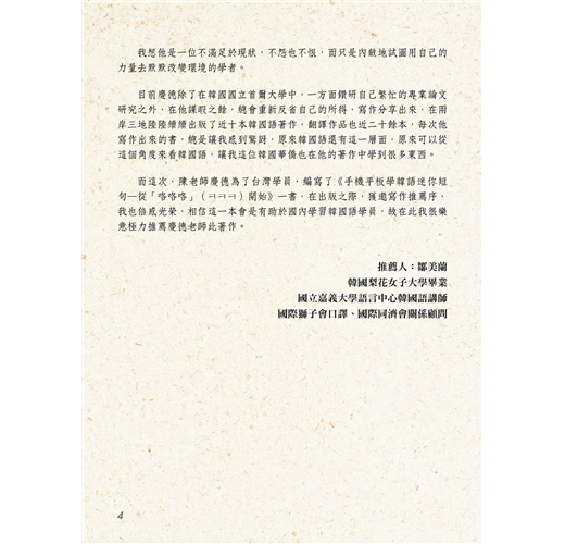 跨領域,國內大學體系跨領域推薦的韓語學習書,國立高雄第一科技大學—孫思源博士(管理學院院長)、國立雲林科技大學—徐啟銘博士(教育部區域產學合作中心主任)以及國立嘉義大學—王永一、鄒美蘭(韓語老師)老師強力推薦。