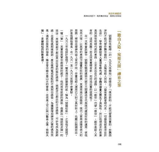 宗煒兄不吝分享他在藝術市場長年觀察、操作的寶貴經驗,提供了開闊的視野與方向,讓初入收藏領域的人士,亦能迅速掌握訣竅,並懂得如何與畫商、拍賣公司斡旋進退。除了買賣的技巧與心得外,宗煒兄也談及了收藏心得與人生,無論在「收藏實務」與「藝術即生活」的議題上,本書皆有獨到的見解。