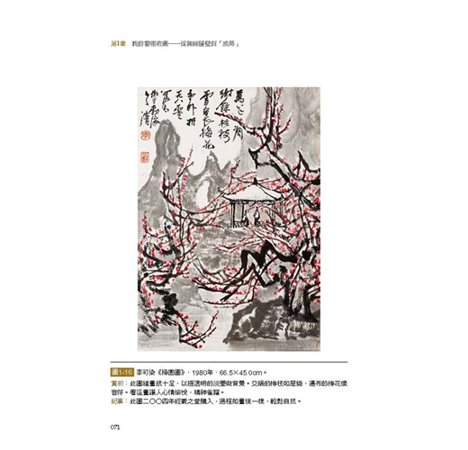 以朱砂畫成的《萬山紅遍》如此稀缺,紅色又極為討喜,答應這項交易又能成全鄧醫師拿回《峽谷放筏圖》的心願,我的確是猶豫了。然而《萬山紅遍》是李可染文革前的作品,當時李氏畫風尚未完全成熟,整體較為刻板。相較之下,繪於一九七三年的《峽谷放筏圖》,第一眼雖不如以朱砂繪成的《萬山紅遍》搶眼,卻較為靈動,無論是山水氣韻的虛實深遠,或是溪中放筏的動態捕捉,都較《萬山紅遍》精彩許多,我心中實在是更為喜愛《峽谷放筏圖》。為此,我特別請教鴻展藝術中心吳鴻章先生的意見,他也同意《峽谷放筏圖》較為精彩,更堅定了我的看法,於是,我決定留下《峽谷放筏圖》。這是我第一次與《萬山紅遍》擦肩而過。