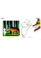 ★大野狼身後藏有小紅帽的身影,遇見巫婆前會發現一只玻璃鞋……畫面中藏有許多童話的線索,來猜猜看小熊遇到的是哪些故事中的角色吧!