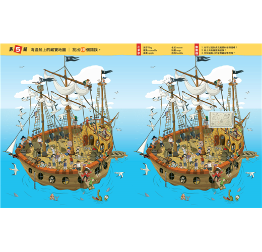 第5關 海盜船上的藏寶地圖 找出16個錯誤。