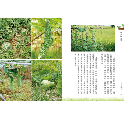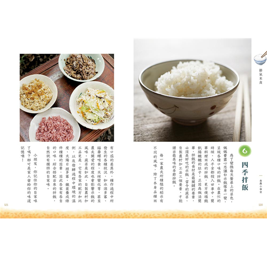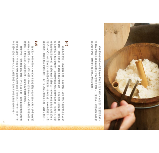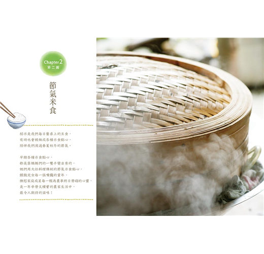 現在就邀請你翻開這本書,打開農村的大門,走進傳統的節氣生活。從文字與照片中閱覽水稻的種作過程,用心靈來品嚐四季米食點心及媽媽們以當令菜蔬所烹調的季節美味。