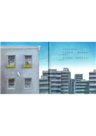 從封面開始,就可以看到阿當手上的花盆、阿當身後的孩子們以及天空,都有繽紛的色彩,但是建築物卻都是灰色或白色,毫無生氣而言。而在翻開繪本之後,就可以看到阿當家的窗台有著明顯的黃色;可以感受到作者在繪本中所隱含的寓意:阿當的內心有著豐富的世界以及充滿了愛,而天空、花朵也畫上了繽紛的色彩,對比出在建築物裡頭的人們的冷漠、冰冷。