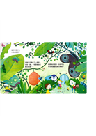偷偷看一下,葉子下、門後面,躲著吵吵鬧鬧的鸚鵡、頑皮的猴子、長得好高好高的長頸鹿,還有更多有趣的事情呢!