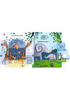 動物園的內容便是以動物「在園區內的生活」為主軸,時序從白天到夜晚,畫面從一入園的大場景到各區細部畫面,讓孩子在頁面之間彷彿身在其中的遊園一回。而也能夠認識到動物園為了按照動物的習性所做的「環境多樣化」設計,讓動物即使在異地的園區居住,也盡量能像在原棲息地一樣的舒適。