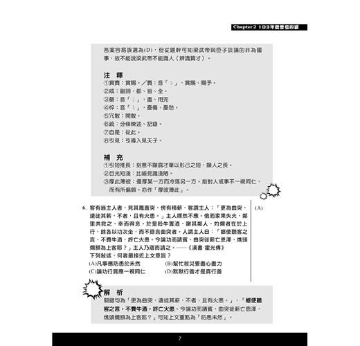 本書貼心編排之版面空間設計及字體格式易於閱讀,舒適學習、快速吸收,超高規格獨門破解國文攻略,要你面對考題時能沉著應變,穩拿共同科目基本分!