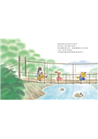 陽光草原在河對岸,狐狸、小兔和大熊開開心心的走過吊橋,一點也不害怕。正當他們在草原上玩得開心時,突然聽到遠方傳來「我也要玩」的聲音。一看,原來是小狸貓在吊橋的另一邊跟他們揮手。狐狸、小兔和大熊一起揮手喊著要小狸貓走過吊橋來,可是小狸貓說:「吊橋好可怕,我過不去啦──」小狸貓好想跟大家一起玩,但是他實在是太害怕走吊橋了。於是小兔和狐狸跑過橋去,跟小狸貓說他們會牽著他的手,一邊唱歌一起過橋。可是小狸貓說:「手牽手和唱歌都沒有用,吊橋還是會搖啊!」然後大熊走過吊橋來,跟小狸貓說要背著他過橋。可是小狸貓說:「背著過橋更可怕啊──」說著忍不住哭了起來……