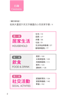本書分為七章,每章都有不同的主題,像是居家生活、飲食、社交活動、交通、職場商務、旅遊和運動休閒。每章都以清楚的主題區分,這使閱讀本書十分容易,若想只看某個單元也十分方便。