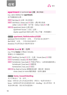 apartment多指沒有電梯的「公寓」,多出現在美式英語中。flat同樣指「公寓」,多用於英式英語中。dormitory多為學校或公司提供的宿舍。